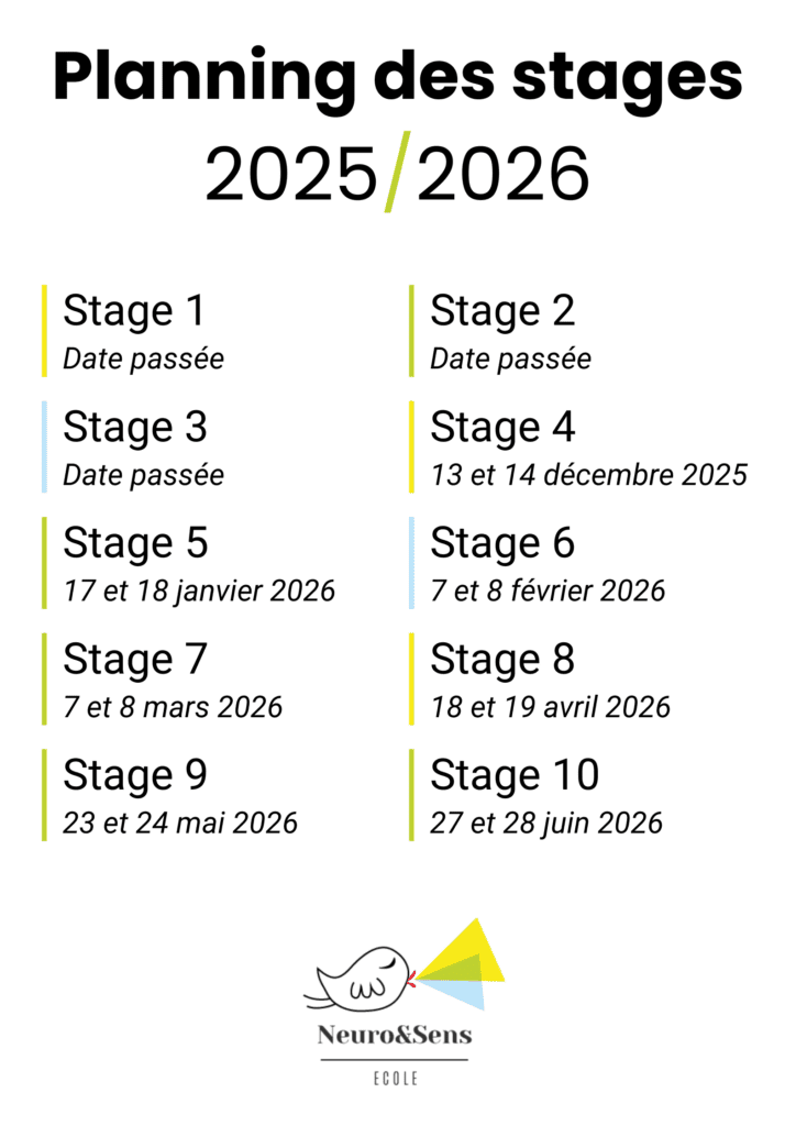 Une immersion complète : Dès le deuxième stage, plongez dans l’univers de la formation Neuro&Sens avec des sessions actives et participatives.
